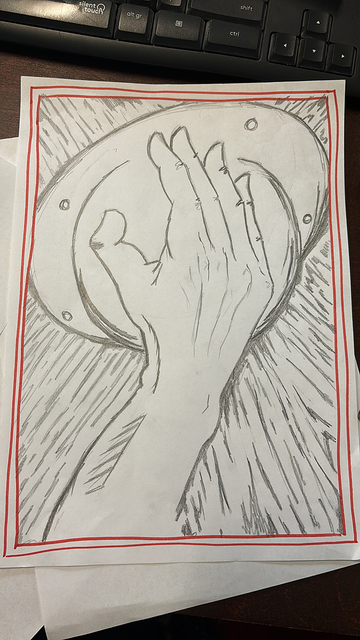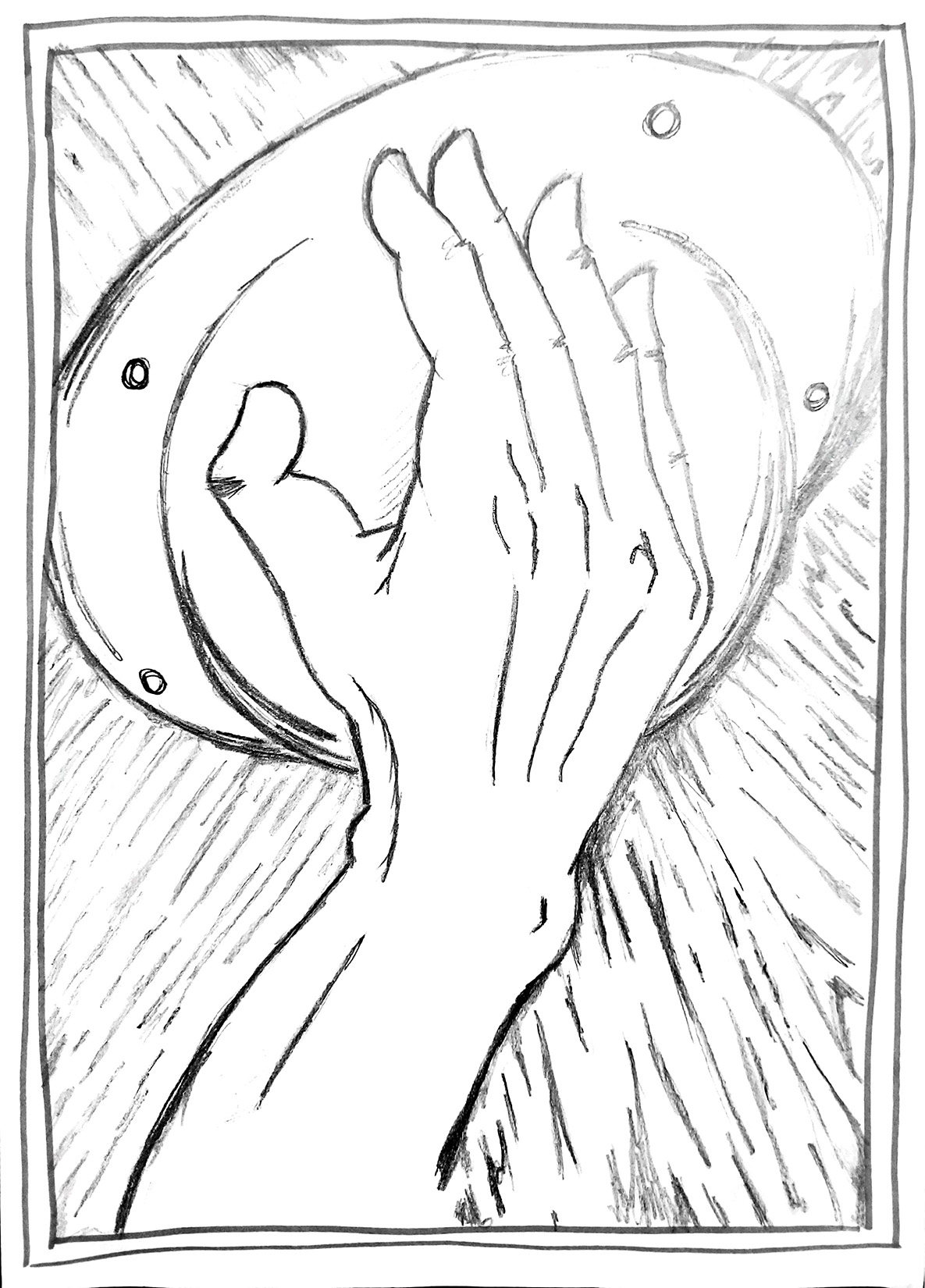 Ik heb eerst een schets gemaakt met potlood. Naderhand heb ik die ingescand en uitgeprint. De tekening van de uitgeprinte versie heb ik daarna harder aangezet met stift, om krachtigere lijnen te creëren. Toen het ontwerp af was, heb ik het ingescand en in Illustrator bewerkt tot een vectorbestand. Zo kon ik het ontwerp laten drukken op T-Shirts en omzetten in een poster en stickers.