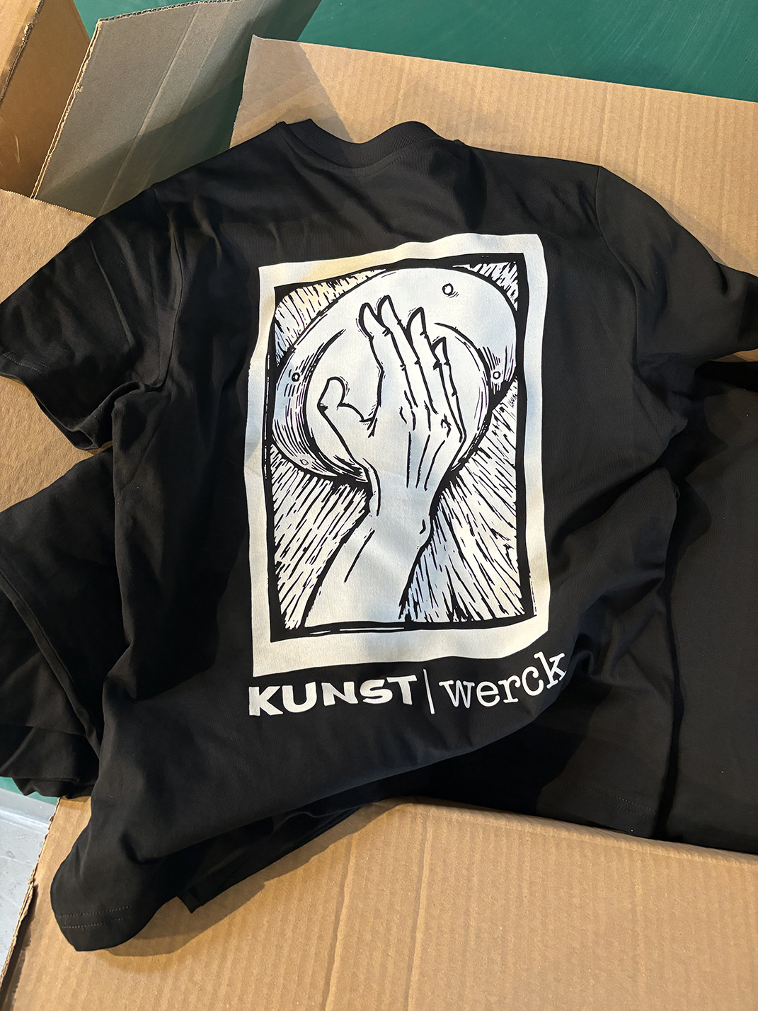 In 2024 werd Boulderhal Kunststof 8 jaar oud. Ik heb het logo ontwerp voor de vriendschappelijke verjaardagscompetitie “KUNST | werck” gemaakt. Ik wilde een ontwerp wat kracht en dynamiek uitstraalde. Geïnspireerd door Noord-Koreaanse propagandaposters en hout-en linosnedes, kwam ik op dit ontwerp uit.